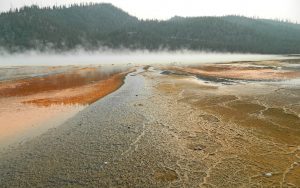 the geysers are many and varied and ever so difficult to photograph in a way that gives one anything like the experience of being there– it’s ATMOSPHERIC– foggy and misty and there are a lot of smells in the air– sulfur being the most prevalent– after all, you are basically in the caldera of the largest volcano on the face of the earth. in some ways it looks desolate and destroyed, but it is really blood and sinew EARTH IN ACTION AND MOTION, with the scab torn off, maybe bleeding a little and messy, but right IN YOUR FACE impressionistic– a world in the midst of creation.